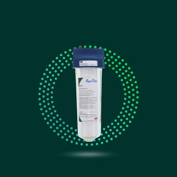 Hình ảnh lắp đặt thực tế bộ lọc thô trong suốt 3M™ Aqua-Pure™ AP11T kết hợp với máy lọc nước 3M™ Aqua-Pure™ BREW120-MS